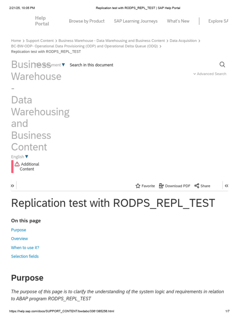 2/21/25, 10:05 PM Replication test with RODPS_REPL_TEST | SAP Help Portal