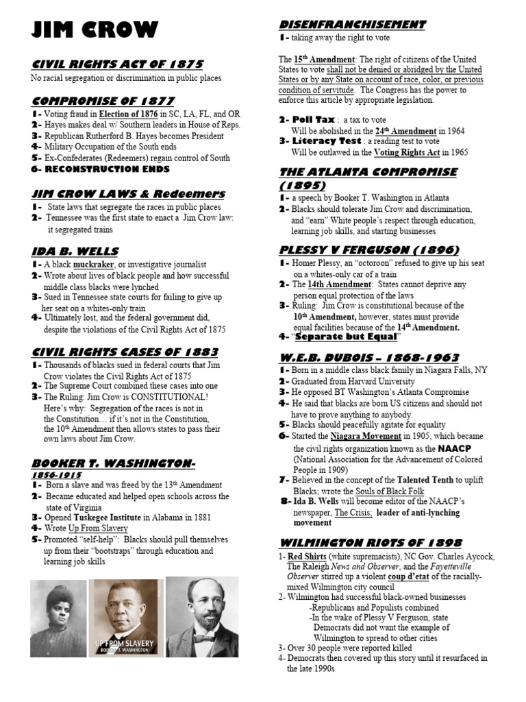 JIM CROW LAWS & Redeemers 1- a speech by Booker T. Washington in Atlanta