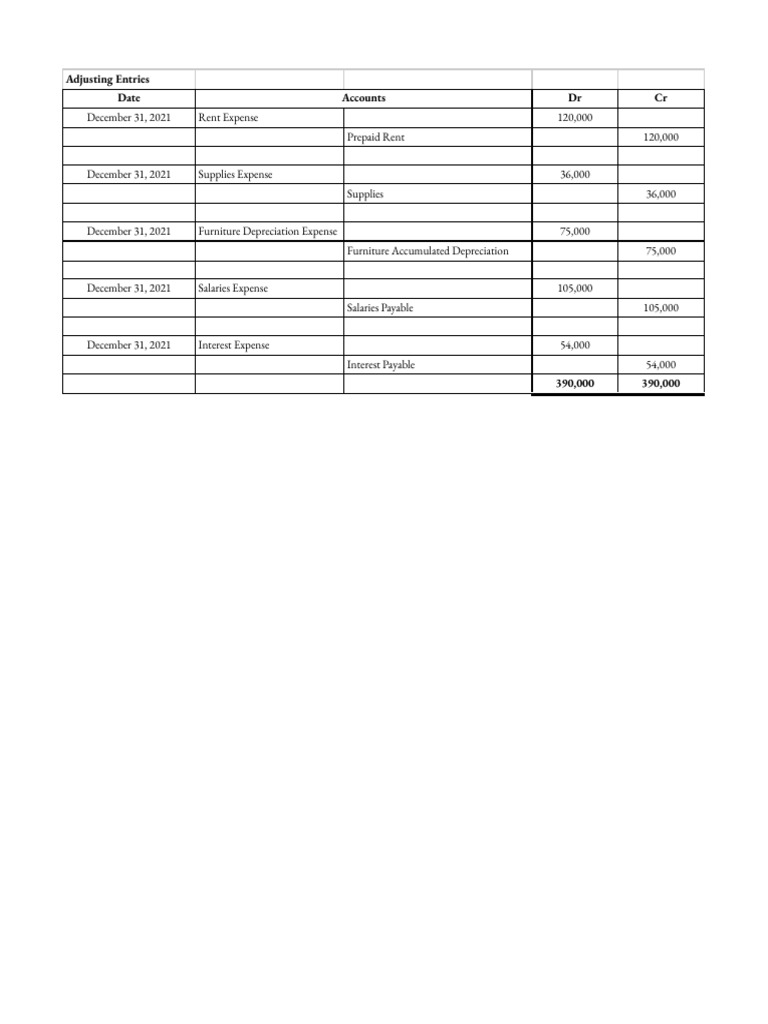 December 31, 2021 Furniture Depreciation Expense 75,000