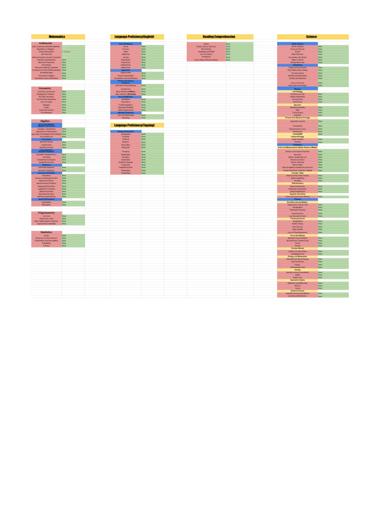 Mahematics Language Proficiency(English) Reading Comprehension Science