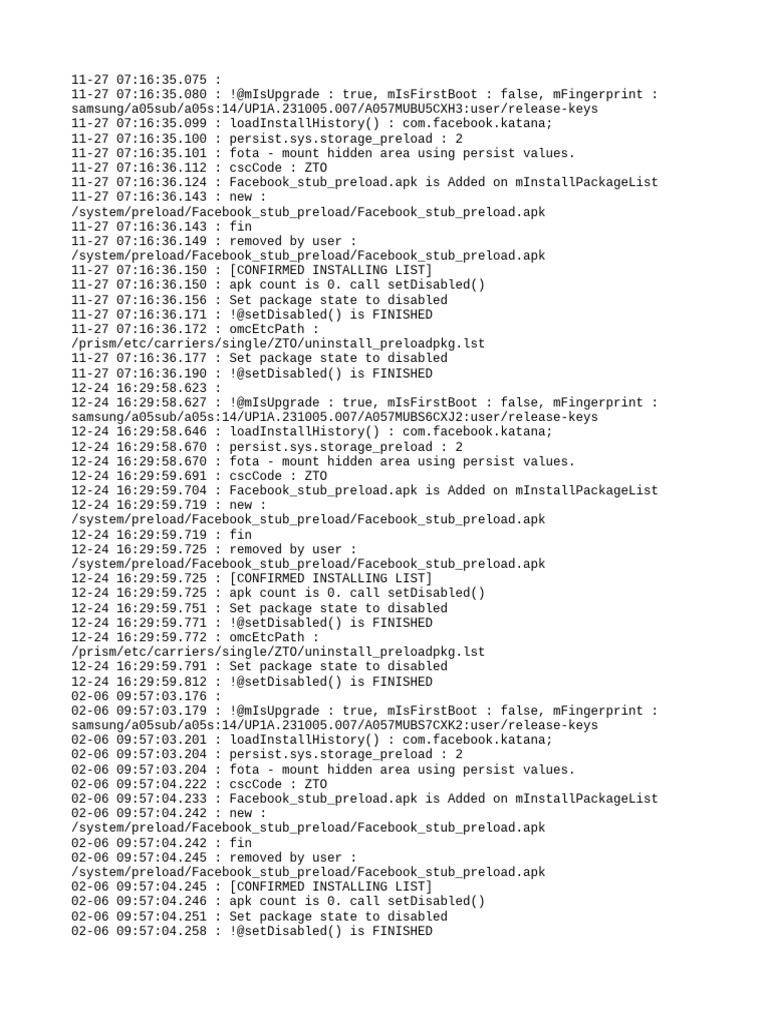 02-06 09:57:04.233 : Facebook_stub_preload.apk is Added on mInstallPackageList