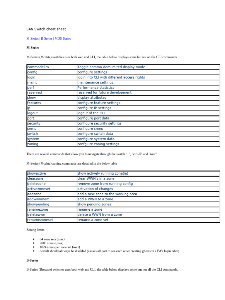 B-Series (Brocade) switches uses both web and CLI, the table below displays some but not all the CLI commands.