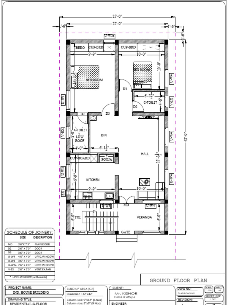 IND. HOUSE BUILDING Dimension : 22' x42' Mr. KISHOR TK-ADR-DWG-001