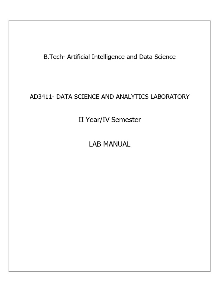 AD3411- DATA SCIENCE AND ANALYTICS LABORATORY