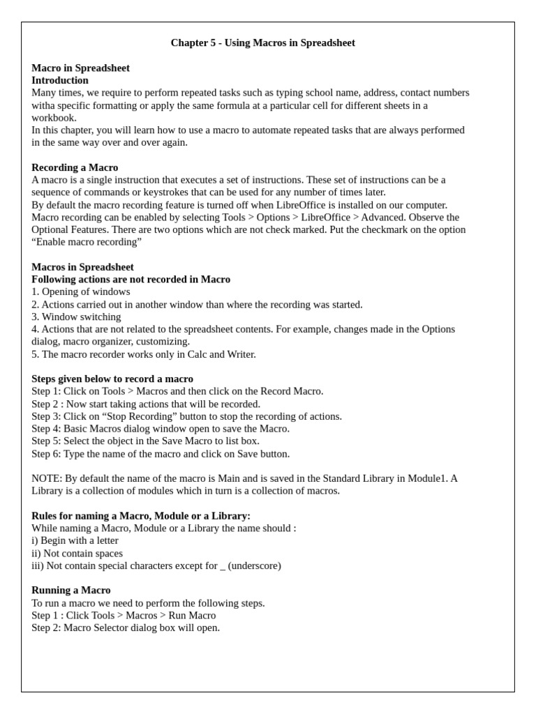 Chapter 5 - Using Macros in Spreadsheet