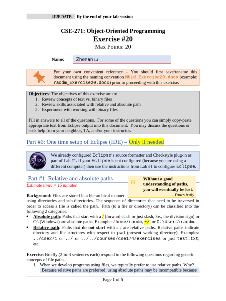 1. When we develop programs using files, we typically prefer to use relative paths. Why?