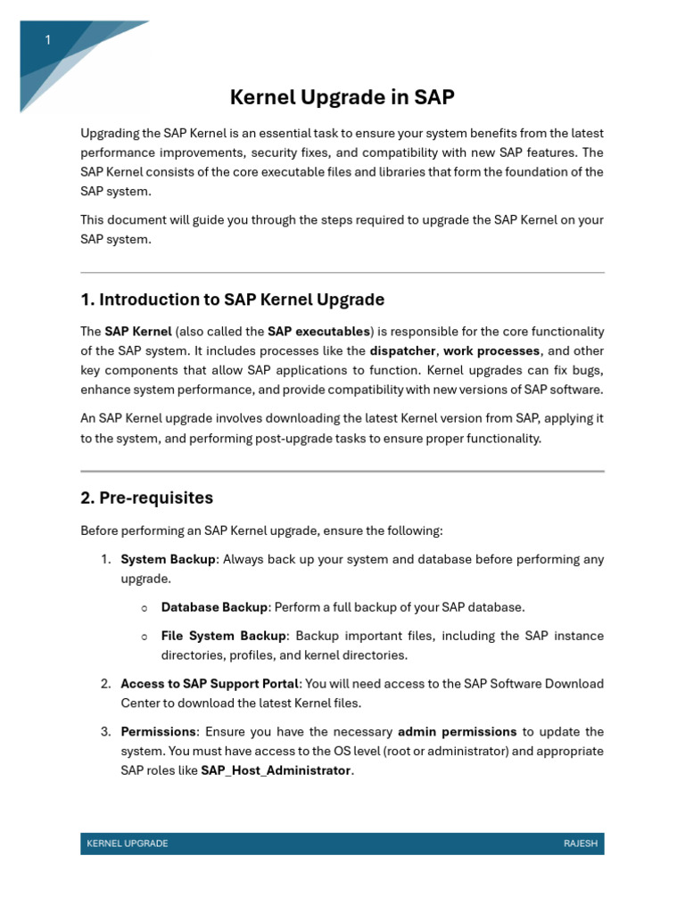This document will guide you through the steps required to upgrade the SAP Kernel on your