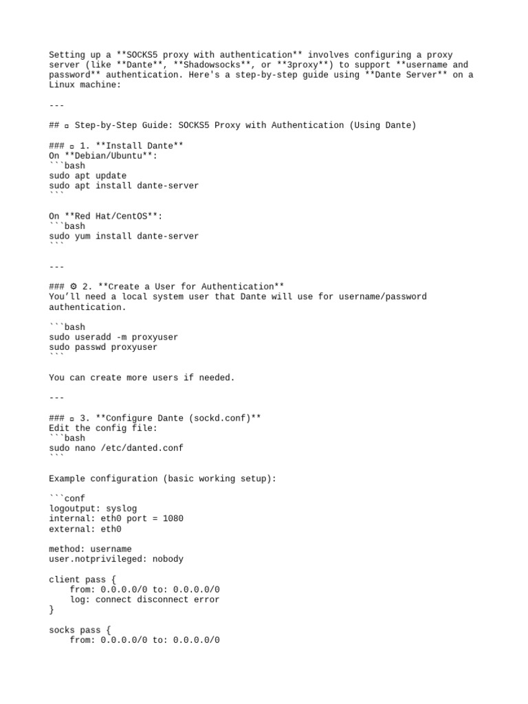 ## ✅ Step-by-Step Guide: SOCKS5 Proxy with Authentication (Using Dante)