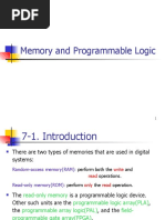 bits. This tabla 7.2 RangedhtaBIErIbrkChdElts Number of Check Blts, k Range of Data Bitr, n 3 24 4 5-11 5 12-26 6 27-57 7 58-120 Section 7.5 Read-only Memory 299 produces the 13-bit word 0011100101M31 (even parity). When the 13-bit word is re ad from memory, the check bits are evaluated, as is the parity P over the entire 13 bits . If P = 0, the parity is correct (even parity), but if P = 1, then the parity over the 13 bits is incorrect (odd parity]. The following four cases can arise: If C = 0 and P = 0, no error occurred. If C # 0 and P = 1, a single error occurred that can be corrected. If C # 0 and P = 0, a double error occurred that is detected, but that cannot be comted. If C = 0 and P = 1, m error occurred in the P13 bit. This scheme may detect more than two errors, but is not guaranteed to detect all such errors. Integrated circuits use a modified Hamming code to generate and check parity bit s for single-error correction and double-error detection. The modified Hamming code us es a more efficient parity configuration that balances the number of bits used to cal culate the XOR operation. A typical integrated circuit that uses an 8-bit data word and a 5 -bit check word is IC type 74637. Other integrated circuits are available for data words of 16 and 32 bits. These circuits can be used in conjunction with a memory unit to correct a singIe error or detect double errors during write and read operations. 7.5 READ-ONLY MEMORY A ROM is essentially a memory device in which permanent binary information is st ored. The binary information must be specified by the designer and is then embedded in the unit to form the required interconnectionpattern. Once the pattern is established, it stays w ithin the unit even when power is turned off and on again. A block diagram of a ROM consisting of k inputs and n outputs is shown in Fig, 7 .9. The inputs provide the address for memory, and the outputs give the data bits of the stored word that is selected by the address. The number of words in a ROM is demmined from the fact that k address input hes are needed to specify 2k words. Note that ROM does not have data input s, because it does not have a write operation. Inregrated circuit ROM chips have one or more e nable inputs and sometimes come with three-state outputs to facilitate the construction of large arrays of ROM, Consider, for example, a 32 X 8 ROM. The unit consists of 32 words of 8 bits eac h. There are five input lines that form the binary numbers from 0 through 31 for the addr
