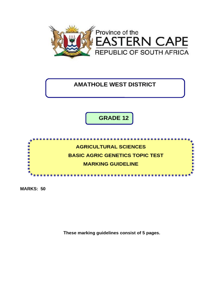 Agricultural Sciences 2 Basic Agric Genetics Topic