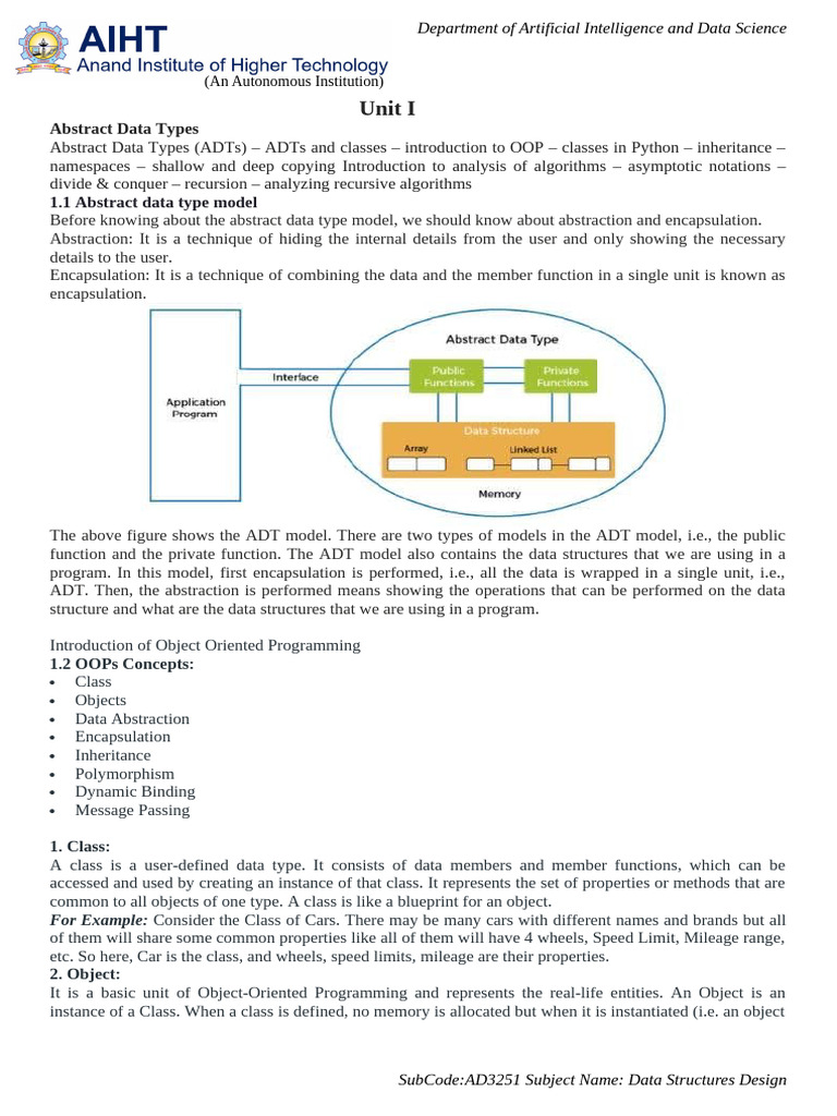 namespaces – shallow and deep copying Introduction to analysis of algorithms – asymptotic notations –