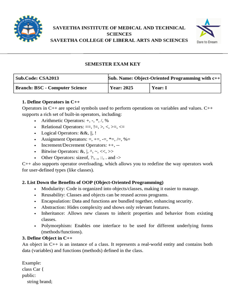 Sub.Code: CSA2013 Sub. Name: Object-Oriented Programming with c++