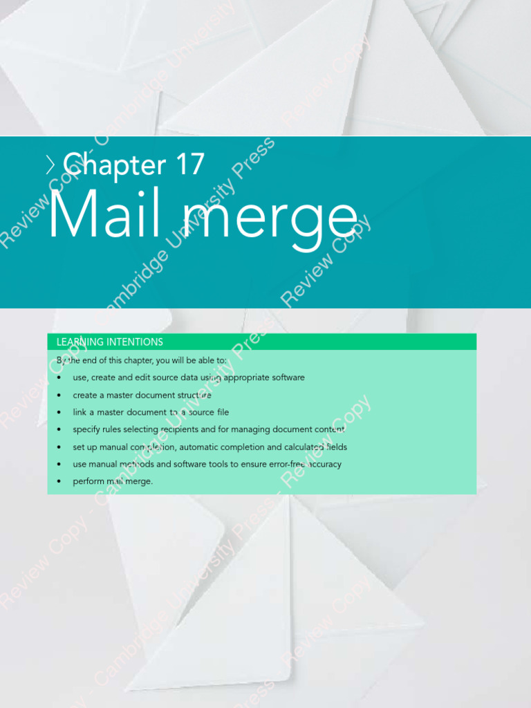• reading the document from start to finish to see if required to see if all merge fields have been included.