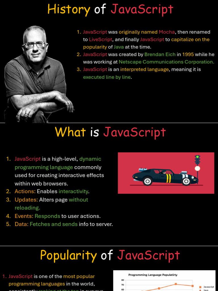 2. JavaScript was created by Brendan Eich in 1995 while he