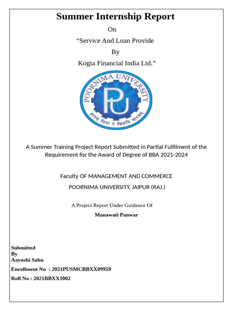 out at Kogta Financial Ltd under the guidance of Ruchi Pareek. This work is being submitted to