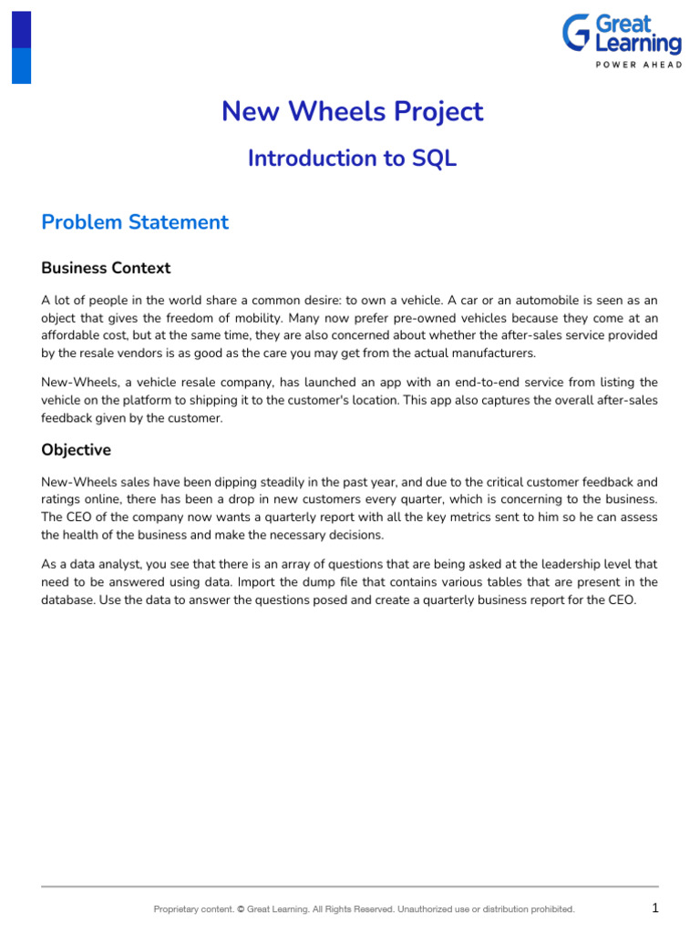 Proprietary content. © Great Learning. All Rights Reserved. Unauthorized use or distribution prohibited. 1
