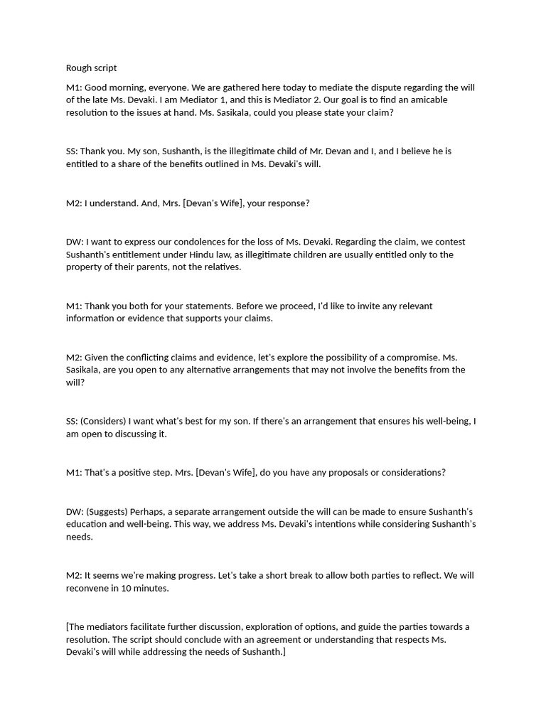 of the late Ms. Devaki. I am Mediator 1, and this is Mediator 2. Our goal is to find an amicable