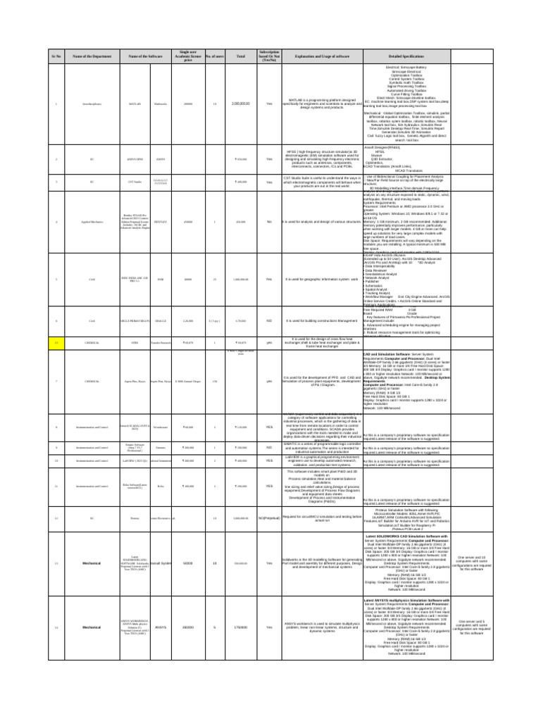 Sr No Name of the Department Name of the Software Academic license No. of users Total based Or Not Explanation and Usage of software Detailed Specifications