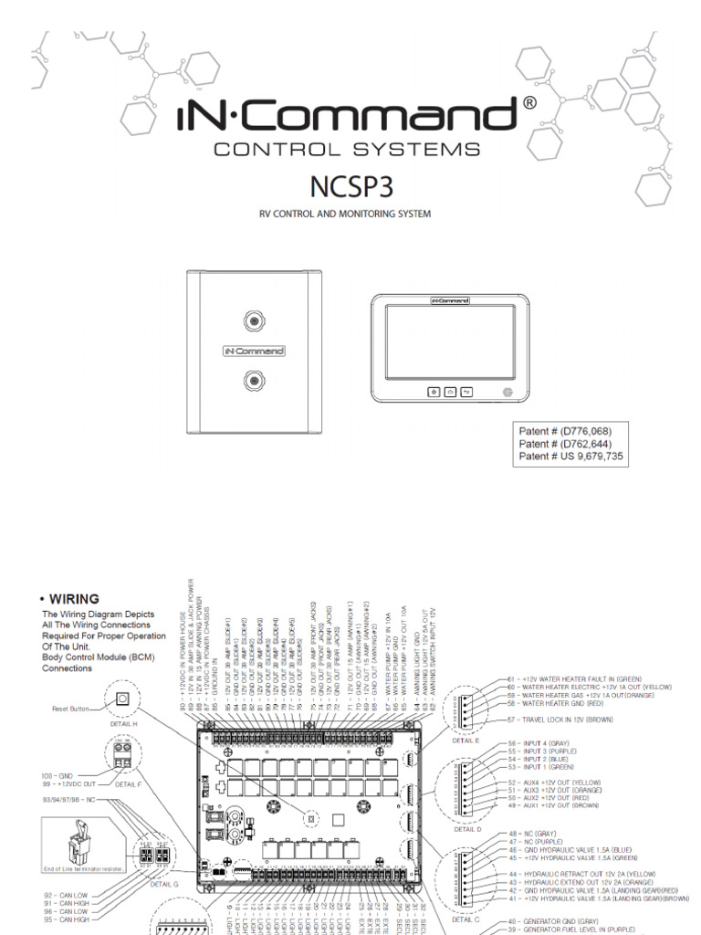 Travel 57 Travel Lockout 12V In 12V Input from Tow Vehicle Locks out all motor functions 12VDC