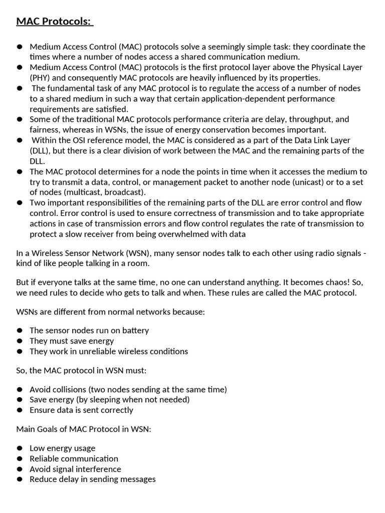 MAC Protocols: