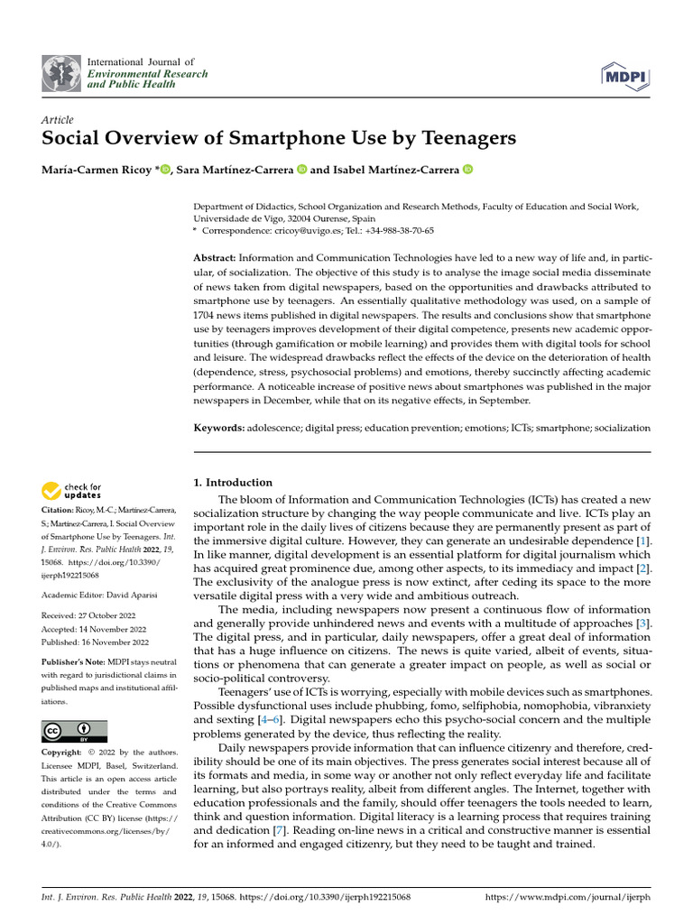 42. Ricoy, M.-C.; Martínez-Carrera, S. Digital newspapers’ perspectives about adolescents’ smartphone use. Sustainability 2021,