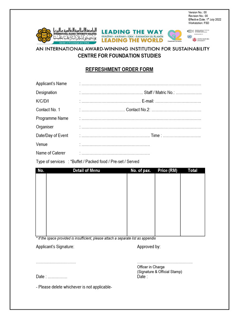 ‘REFRESHMENT ORDER FORM’