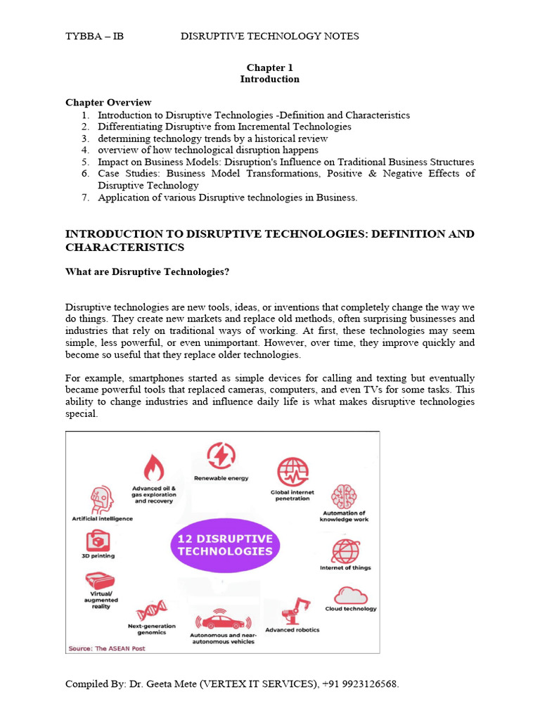 1. Introduction to Disruptive Technologies -Definition and Characteristics