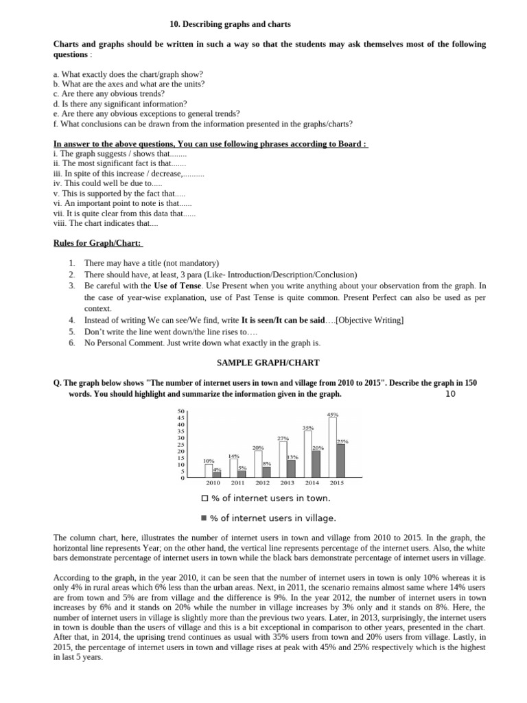 Q. The graph below shows "The number of internet users in town and village from 2010 to 2015". Describe the graph in 150