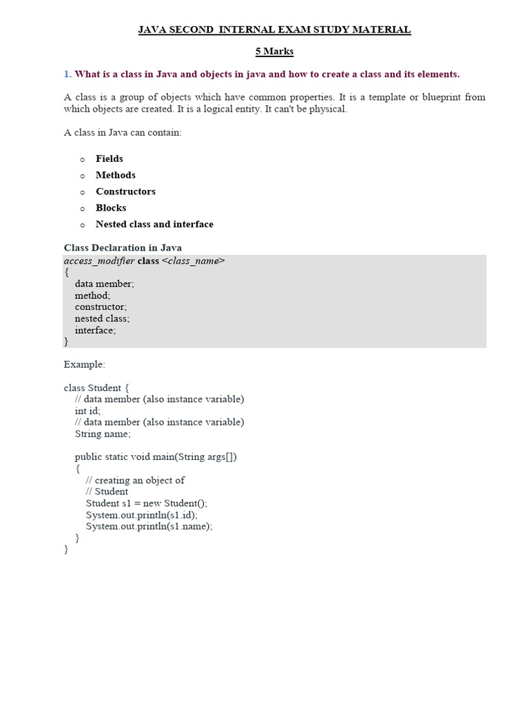 JAVA SECOND INTERNAL EXAM STUDY MATERIAL