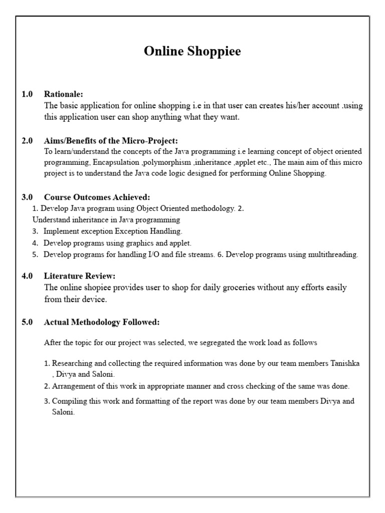 project is to understand the Java code logic designed for performing Online Shopping.