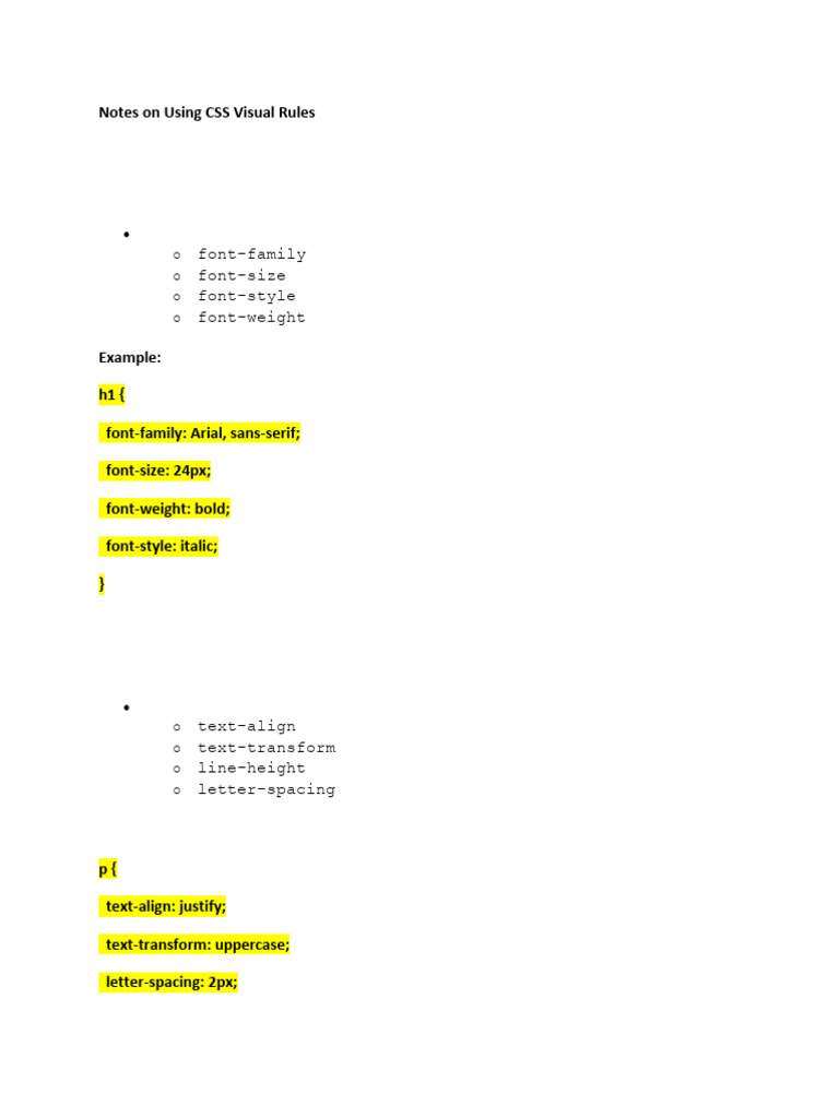 o font-size: Adjusts the size of the text (e.g., 16px, 1em).