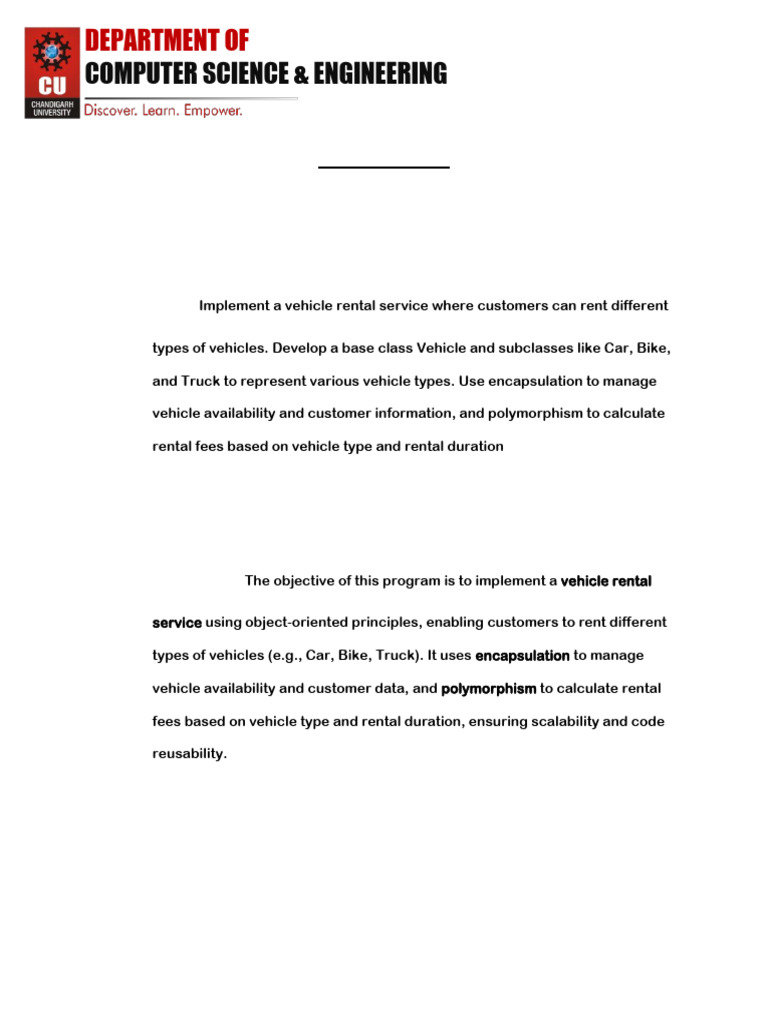 1. Aim: Implement a vehicle rental service where customers can rent different