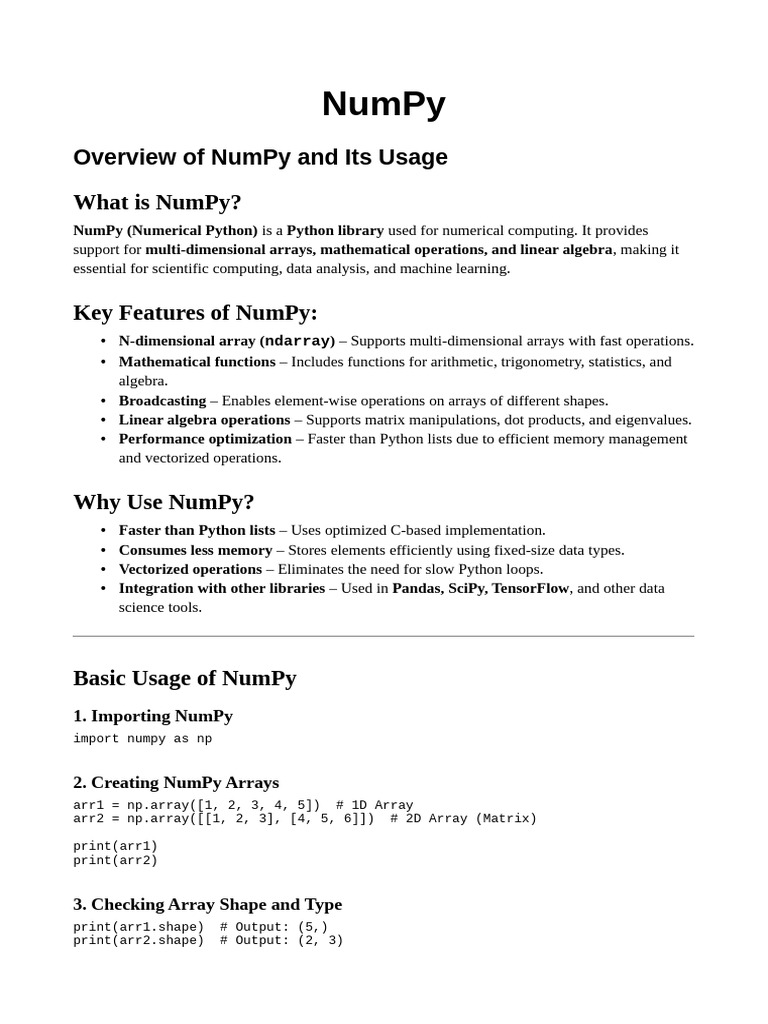 • Integration with other libraries – Used in Pandas, SciPy, TensorFlow, and other data