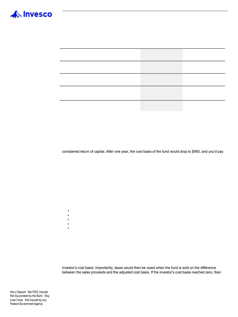 considered return of capital. After one year, the cost basis of the fund would drop to $960, and you’d pay
