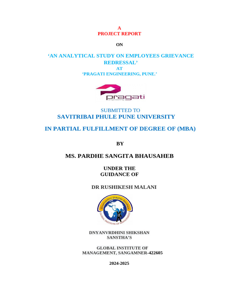 ANALYTICAL STUDY ON EMPLOYEES GRIEVANCE REDRESSAL” written and