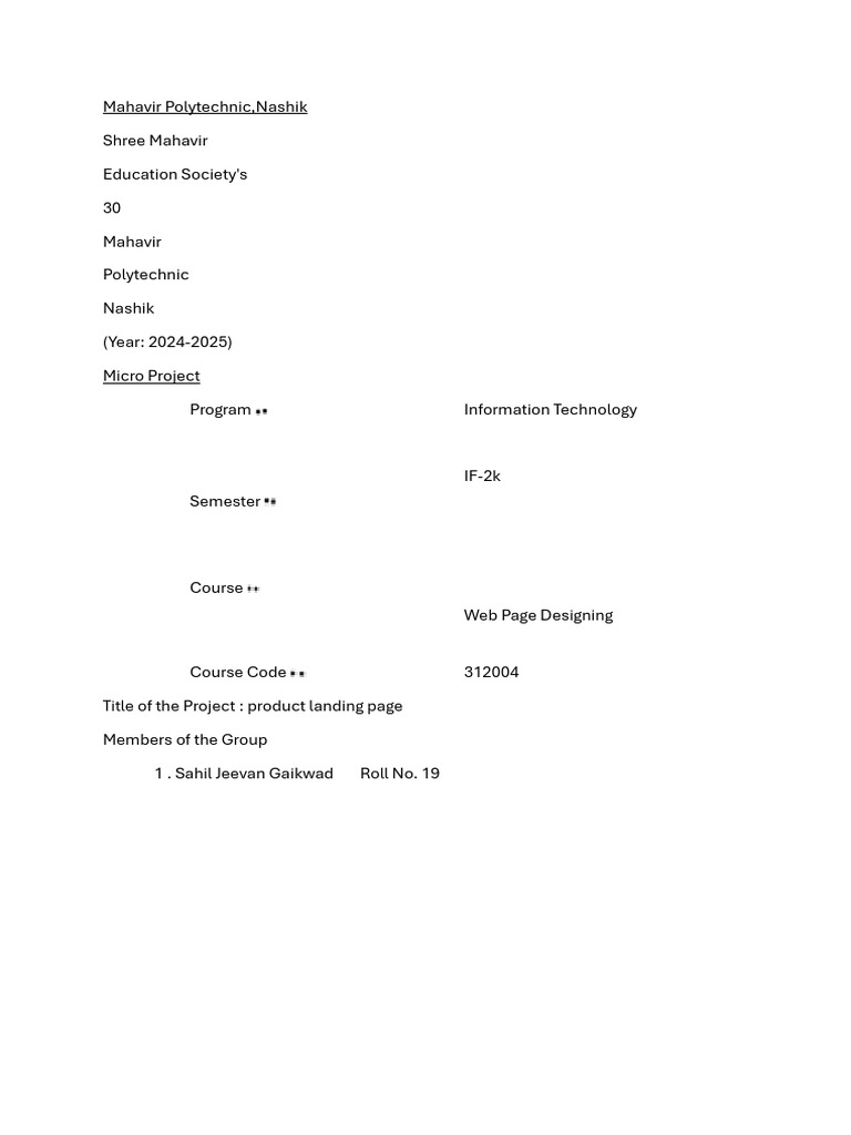 1 . Sahil Jeevan Gaikwad Roll No. 19