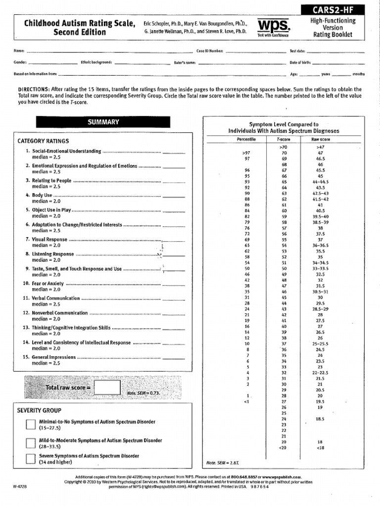 Childhood Autism Rating Scale, txicschopier, ph.o, Mary. Van Bourgondien, PAD, wps. High-Functioning