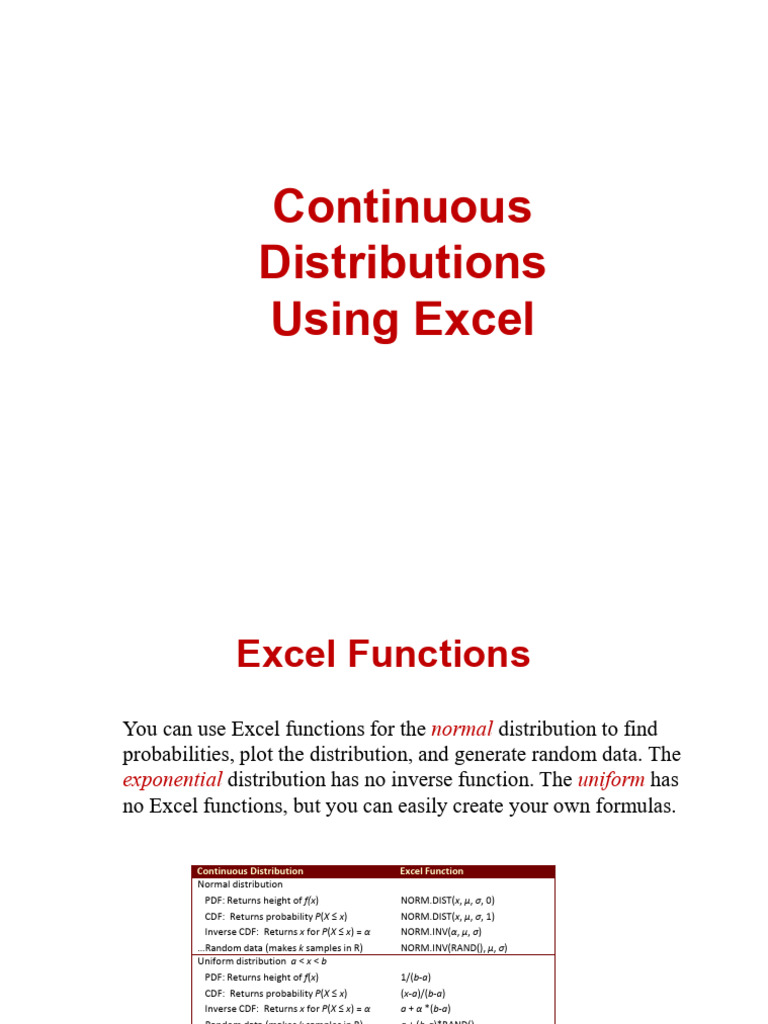 1.000 0.84134 =NORM.S.DIST(1,1) 0.100 -1.2816 =NORM.S.INV(0.10)