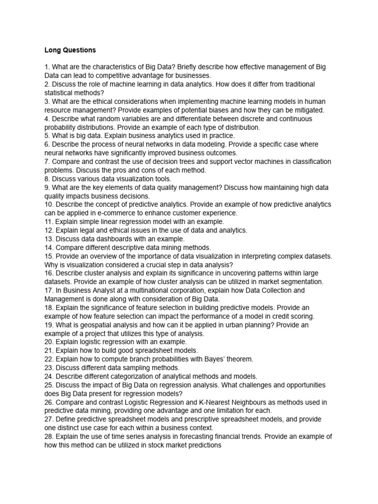 27. Define predictive spreadsheet models and prescriptive spreadsheet models, and provide