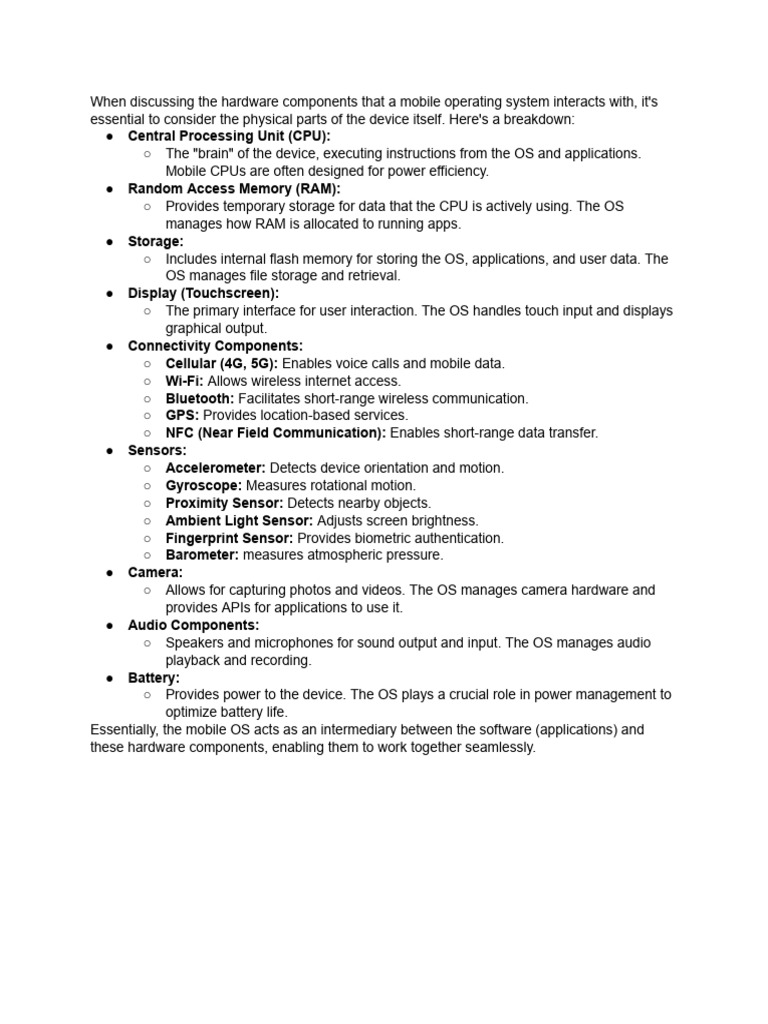 When discussing the hardware components that a mobile operating system interacts with, it's