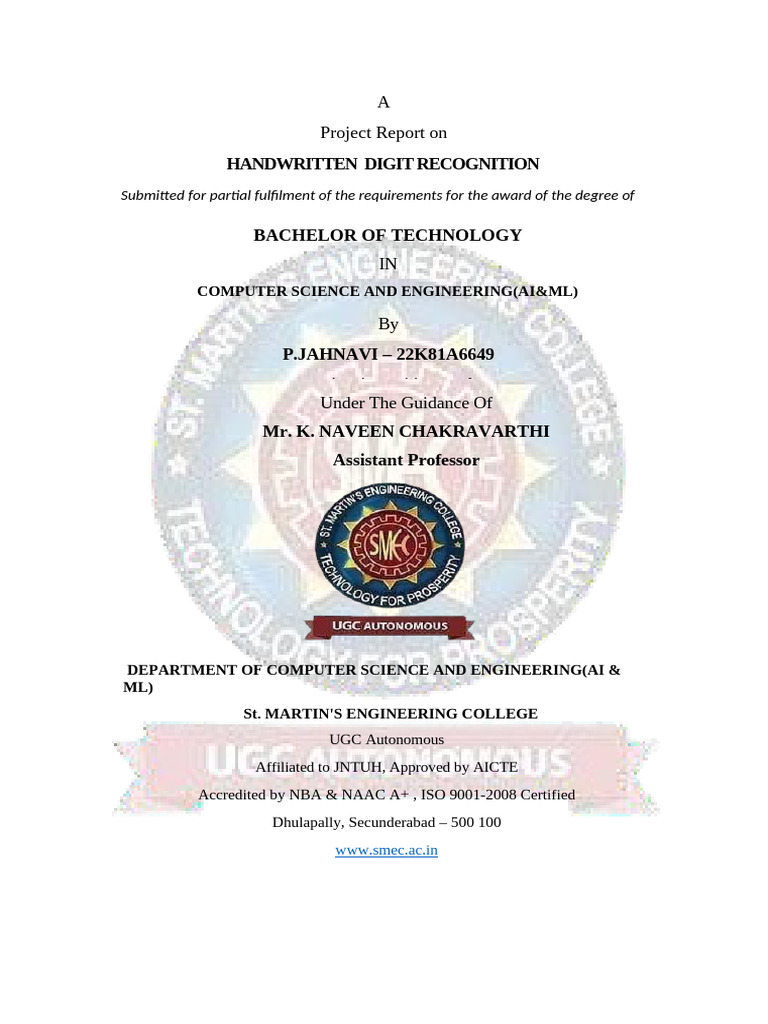 This is to certify that the project entitled “HANDWRITTEN DIGIT