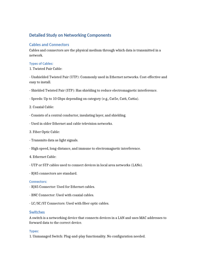 - Speeds: Up to 10 Gbps depending on category (e.g., Cat5e, Cat6, Cat6a).