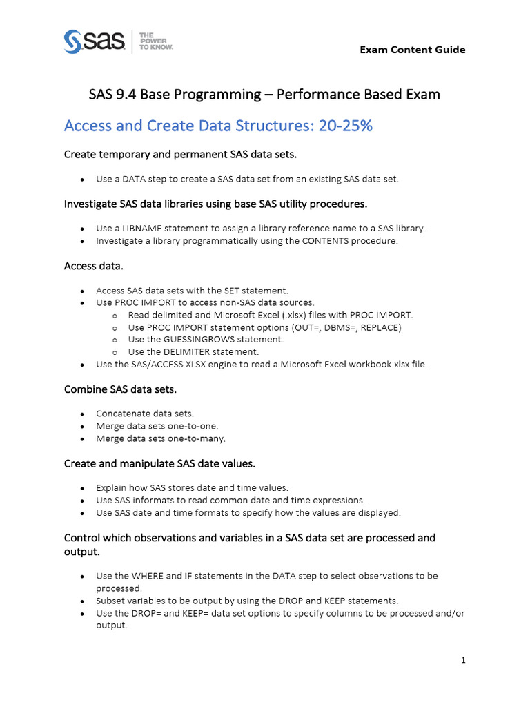 SAS 9.4 Base Programming – Performance Based Exam
