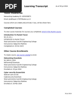 The document is a learning transcript for Ankit Patel, dated 06 May 2024. It includes the Networking Academy ID and email address of the individual. There is a note indicating that ended and archived courses will be displayed, but none are listed in the document.