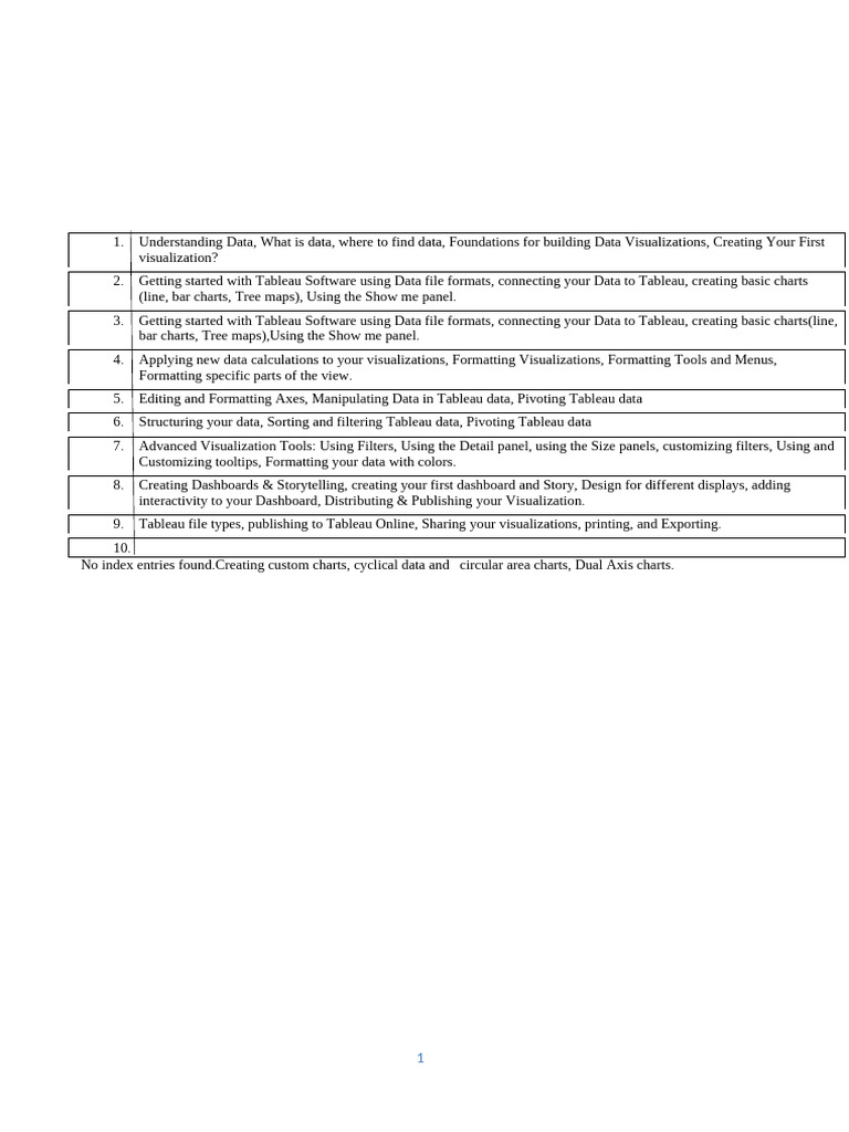 interactivity to your Dashboard, Distributing & Publishing your Visualization.