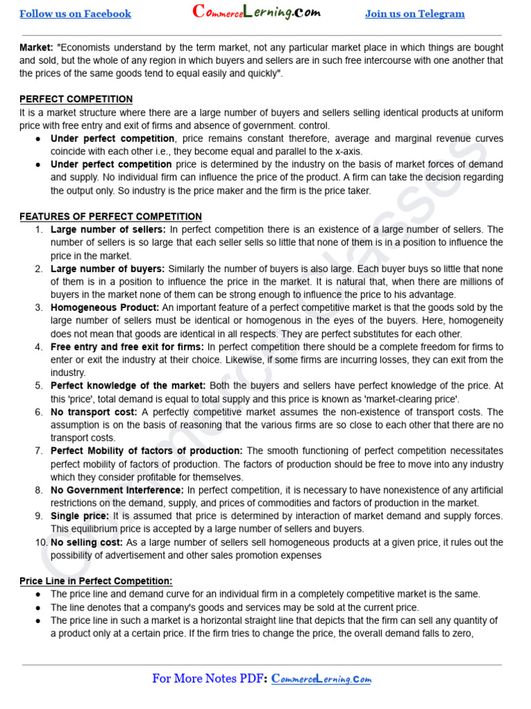 10. No selling cost: As a large number of sellers sell homogeneous products at a given price, it rules out the