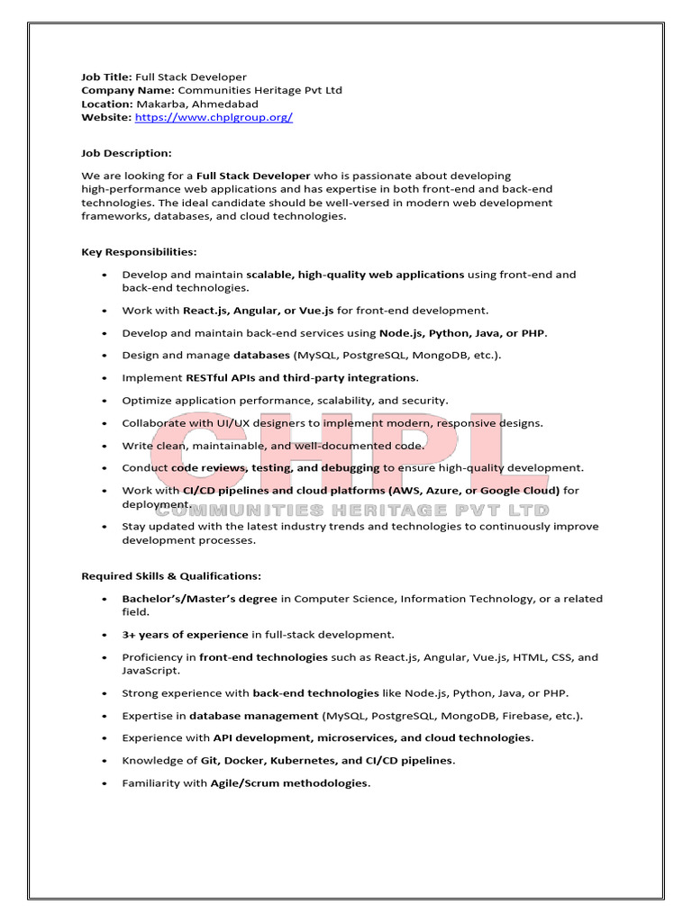 Job Title: Full Stack Developer