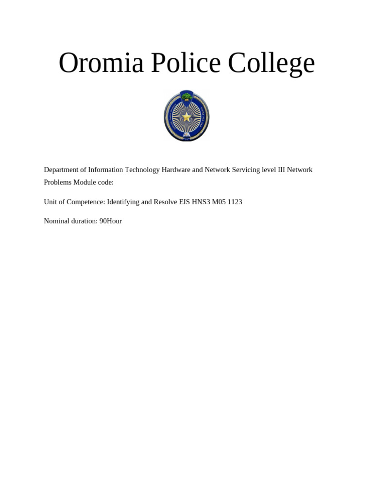 Department of Information Technology Hardware and Network Servicing level III Network