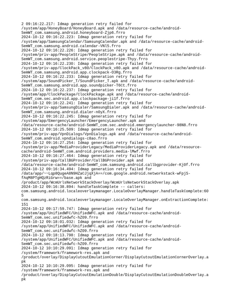 2024-10-12 10:10:29.127: Idmap generation retry failed for /system/system_ext/priv-