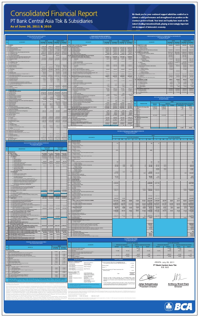 Statements jo. Circular Letter of The Chairman of Bapepam No. SE-03/BL/2011 regarding Guidance for Presentation and Disclosures of Publicly Listed BCA's parent company have not been presented.